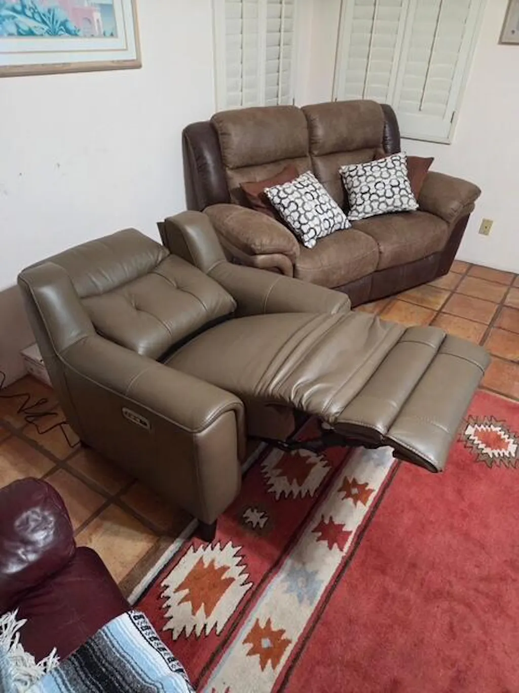 - Integrated Technology: Each recliner control panel features USB and USB-C charging ports for easy access. A built-in Home button resets the chair to its original upright position with one touch.